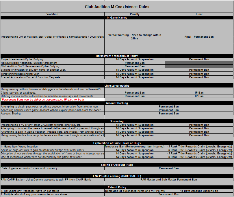 CAM Coexistence Rules Chart